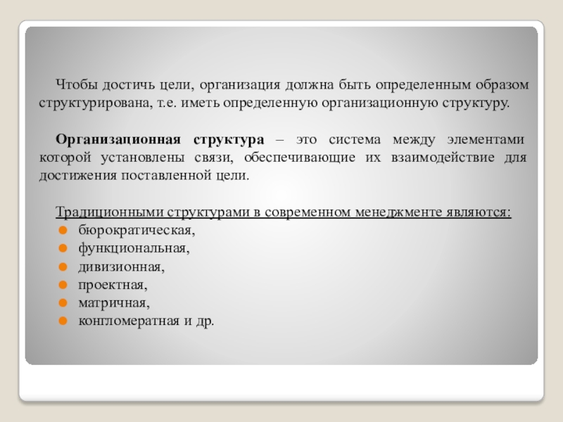 Слайд 14Чтобы достичь цели, организация должна быть определенным образом структурирована, т.е. иметь