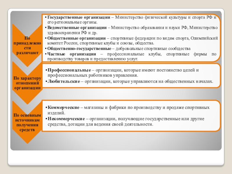 и особенности группы организаций отрасли. Критерии классификации спортивных организаций.
