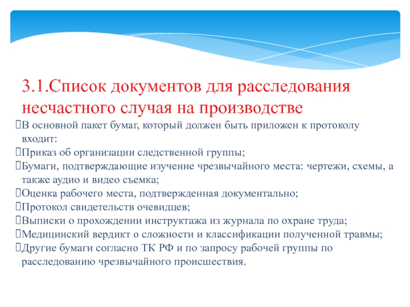 3.1.Список документов для расследования несчастного случая на производстве