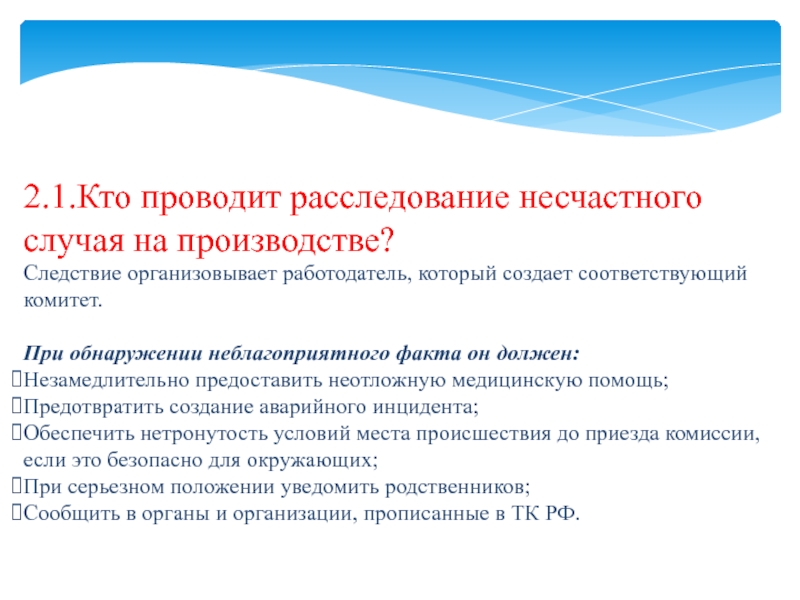 2.1.Кто проводит расследование несчастного случая на производстве?