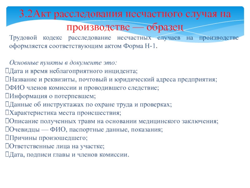 Слайд 113.2Акт расследования несчастного случая на производстве — образец