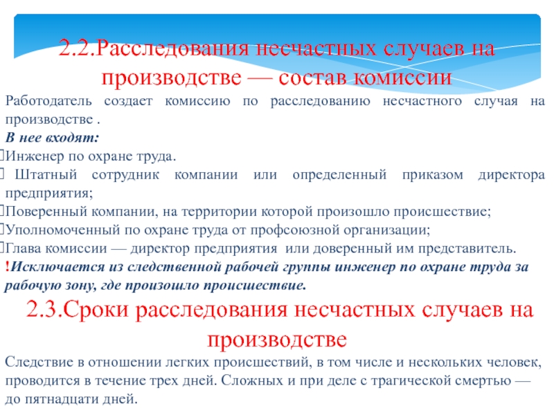 2.2.Расследования несчастных случаев на производстве — состав комиссии