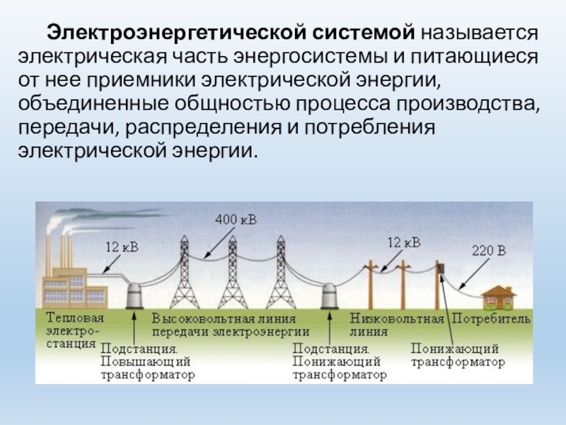 Слайд 2 Электроэнергетической системой называется электрическая часть энергосистемы и питающиеся от нее приемники электрической