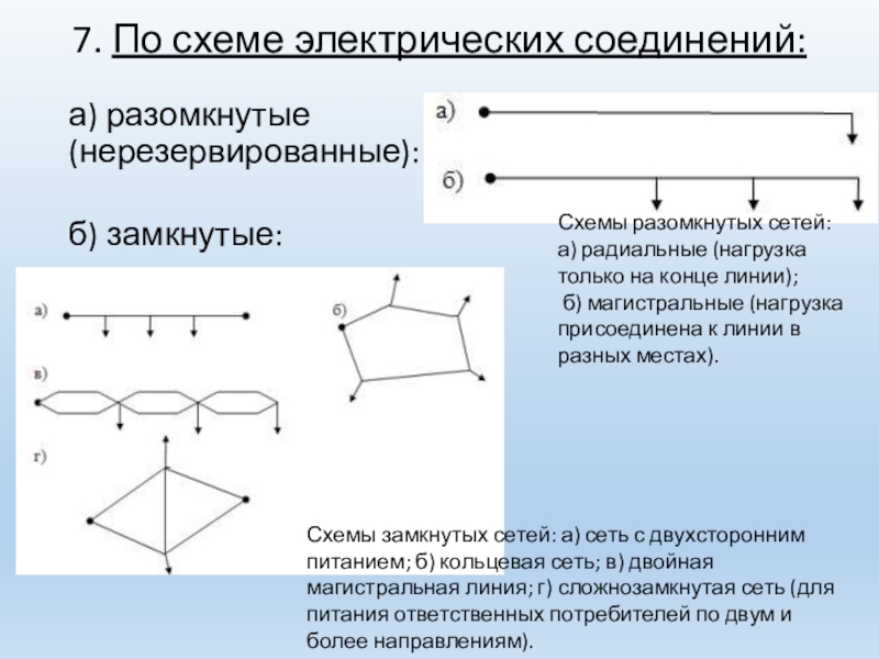 б) магистральные (нагрузка присоединена к линии в разных местах).
