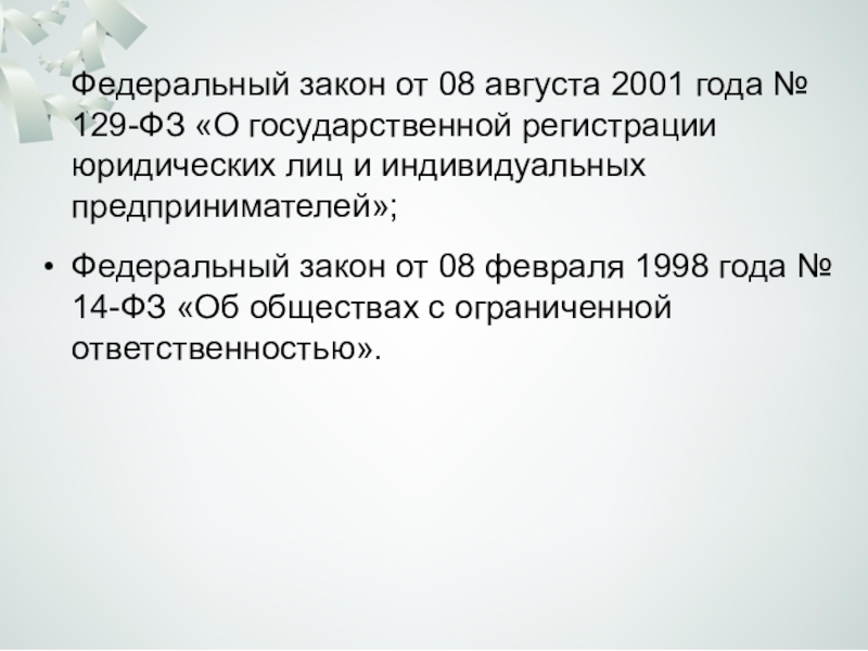 Слайд 31Федеральный закон от 08 августа 2001 года № 129-ФЗ «О государственной