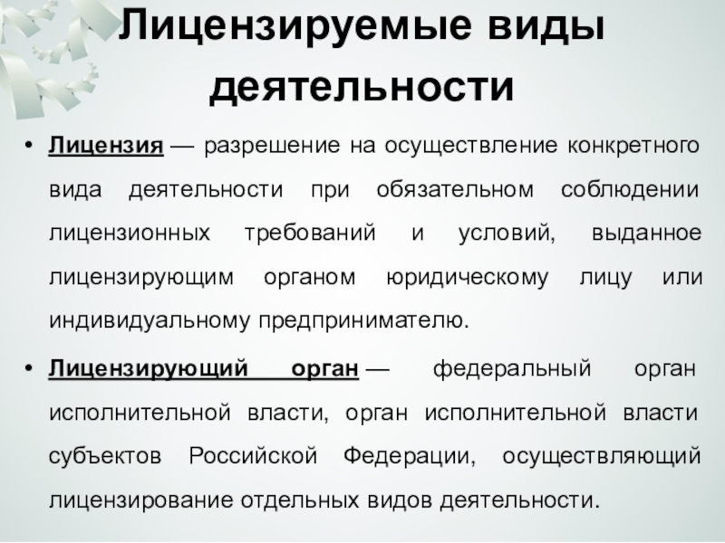 Лицензия — разрешение на осуществление конкретного вида деятельности при обязательном