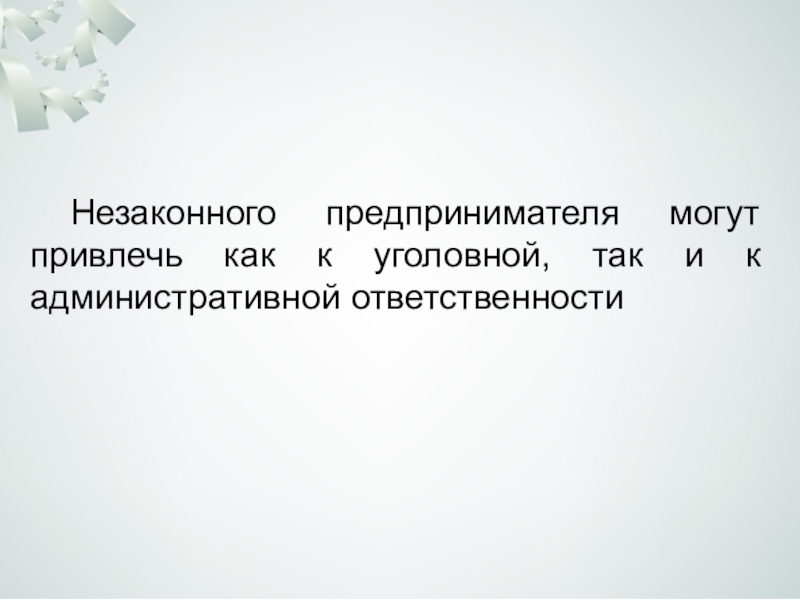 Слайд 58 Незаконного предпринимателя могут привлечь как к уголовной, так и к административной