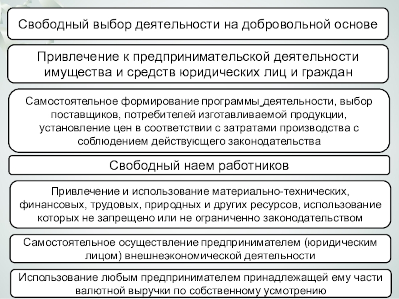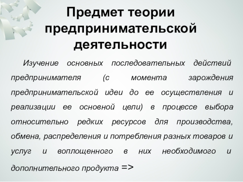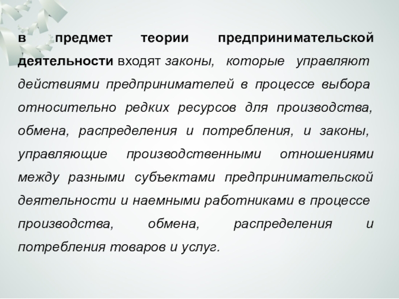 Слайд 21в предмет теории предпринимательской деятельности входят законы, которые управляют действиями предпринимателей в процессе