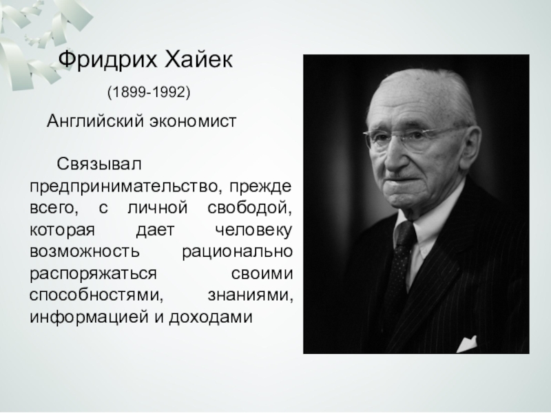 Связывал предпринимательство, прежде всего, с личной свободой, которая дает