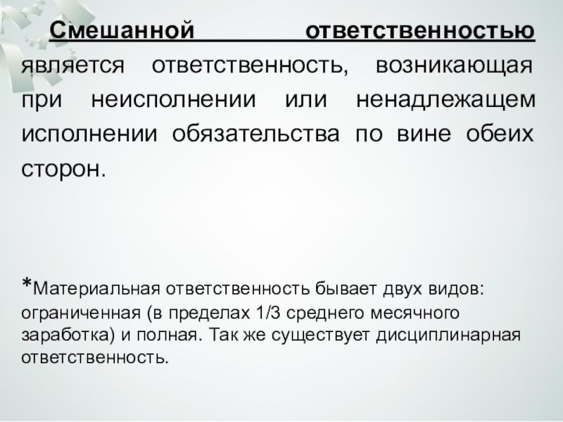 Слайд 49 Смешанной ответственностью является ответственность, возникающая при неисполнении или ненадлежащем исполнении обязательства