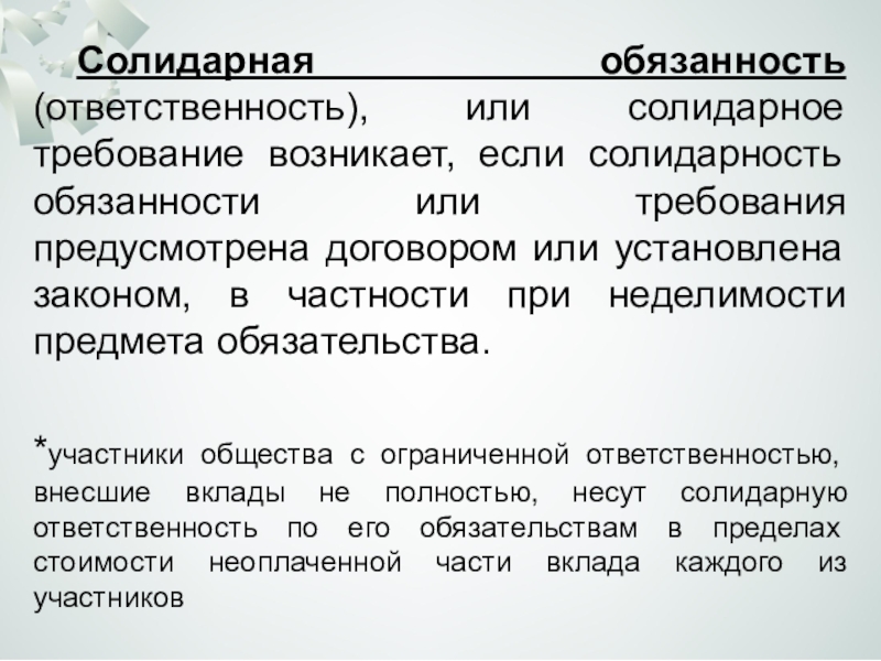 Слайд 47 Солидарная обязанность (ответственность), или солидарное требование возникает, если солидарность обязанности или