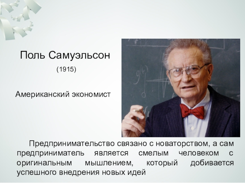 Предпринимательство связано с новаторством, а сам предприниматель является смелым