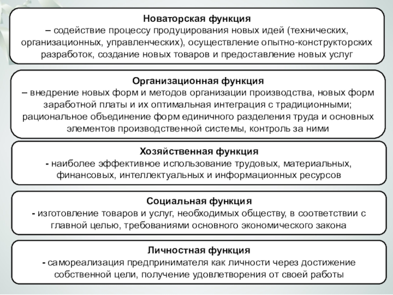 риск с целью получения выгоды, основываясь на своих знаниях и опыте, комбинируя факторы производства.
