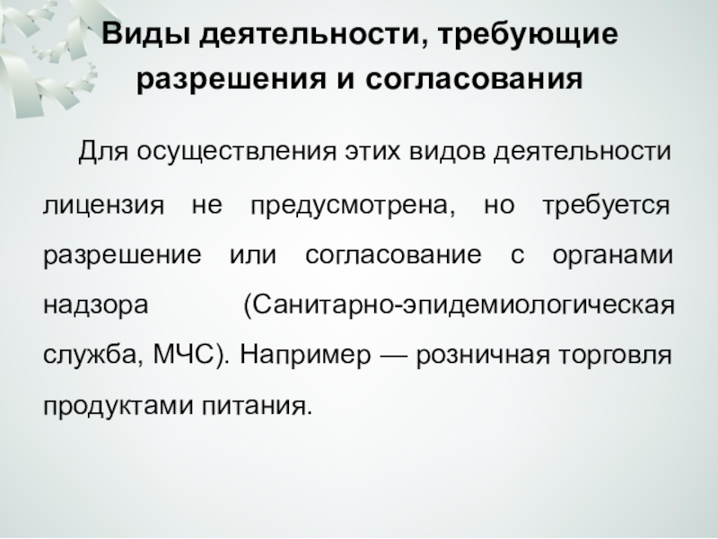 Слайд 42Виды деятельности, требующие разрешения и согласования