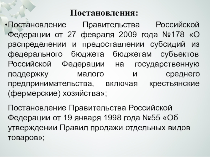 Постановление Правительства Российской Федерации от 19 января 1998 года №55 «Об утверждении Правил продажи отдельных видов товаров»;