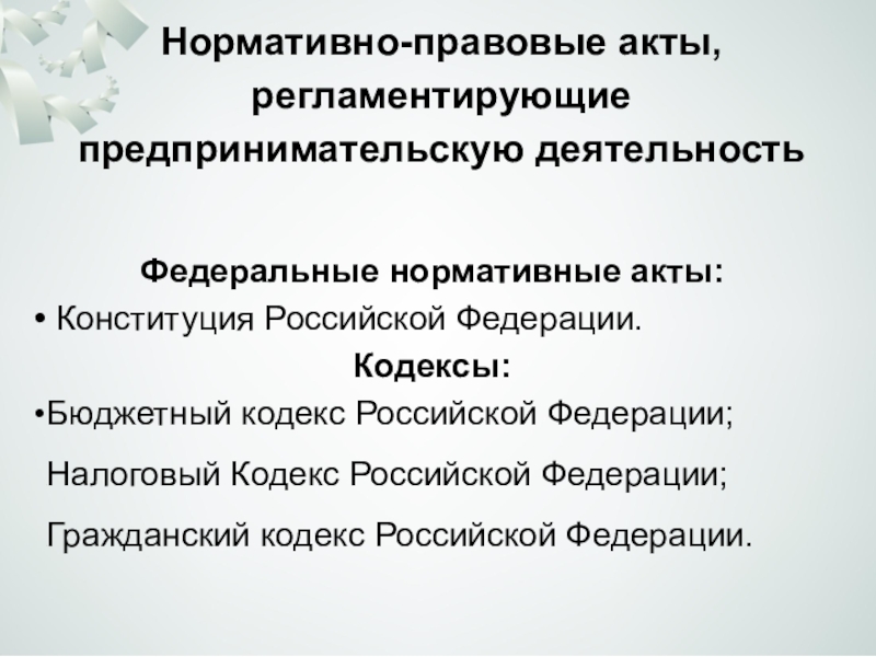 ПРАВОВЫЕ ОСНОВЫ ПРЕДПРИНИМАТЕЛЬСТВА