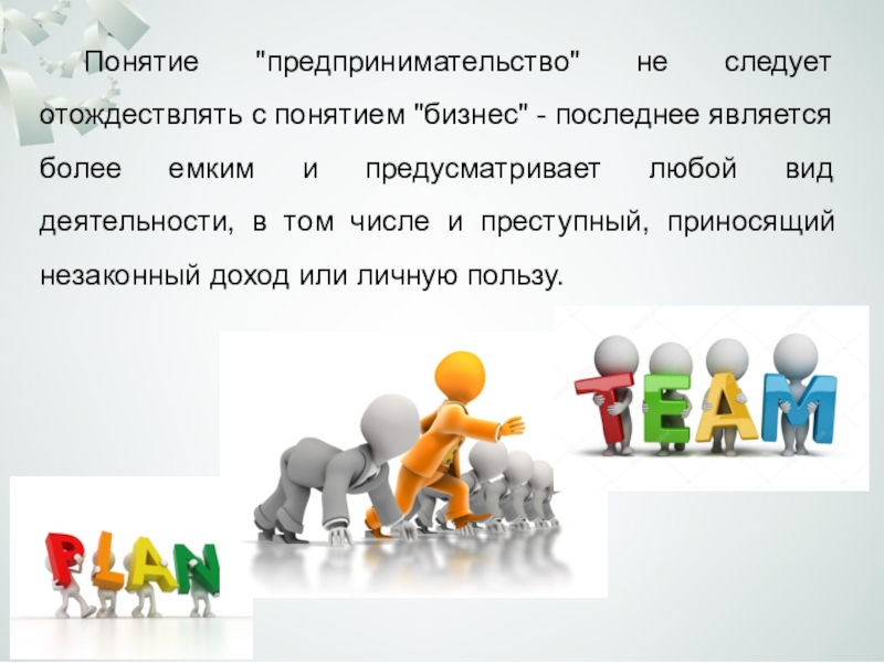 Слайд 16 Понятие "предпринимательство" не следует отождествлять с понятием "бизнес" - последнее является