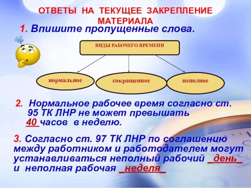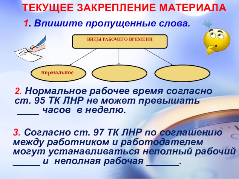 Статья 95 Понятие рабочего времени. Нормальная продолжительность рабочего времени