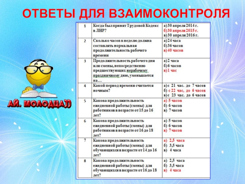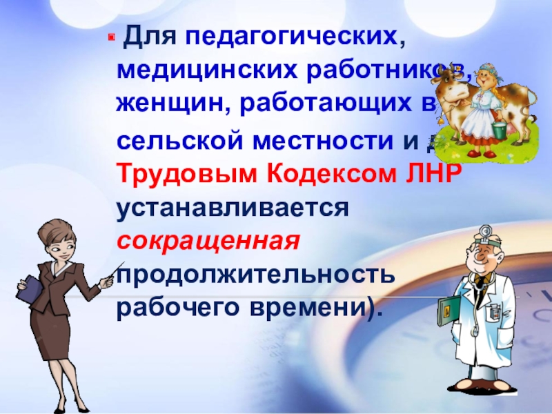 др., Трудовым Кодексом ЛНР устанавливается сокращенная продолжительность рабочего времени).