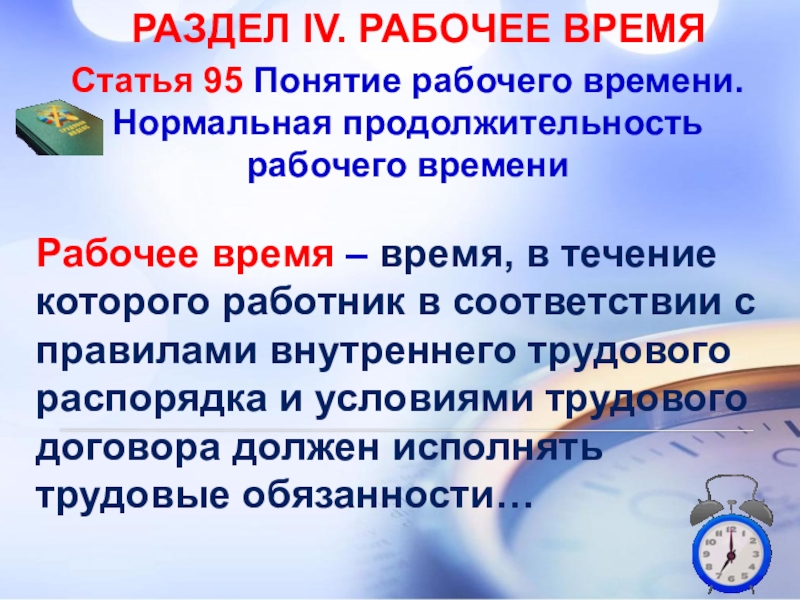 Слайд 8РАЗДЕЛ IV. РАБОЧЕЕ ВРЕМЯ