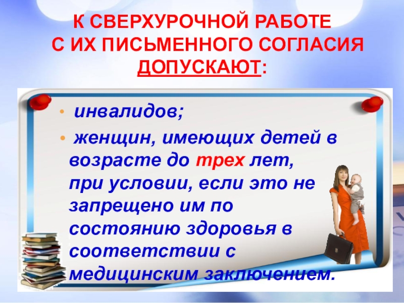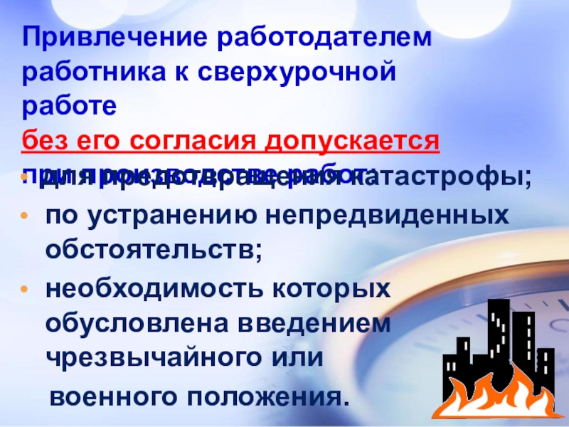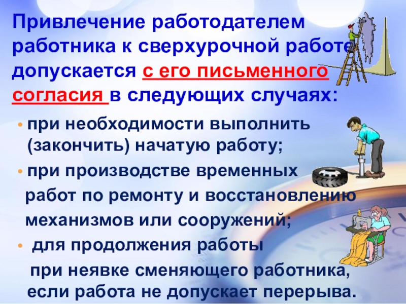 Слайд 26Привлечение работодателем работника к сверхурочной работе