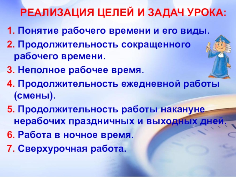 5. Продолжительность работы накануне нерабочих праздничных и выходных дней.