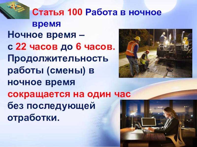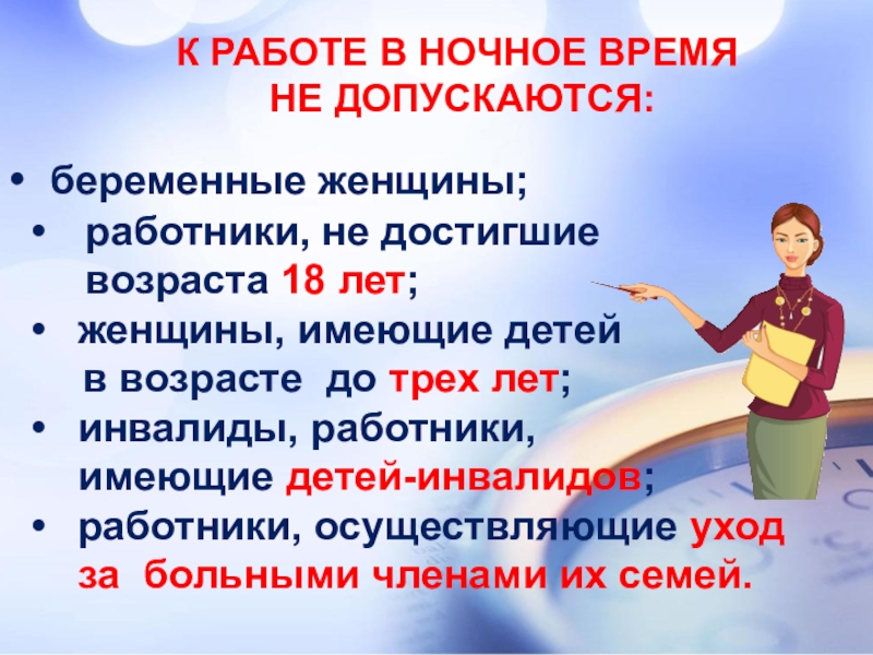 Слайд 23К РАБОТЕ В НОЧНОЕ ВРЕМЯ