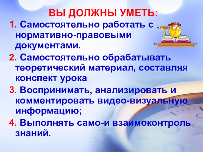 1. Самостоятельно работать с нормативно-правовыми документами.