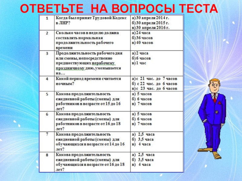 2. Нормальное рабочее время согласно ст. 95 ТК ЛНР не может превышать