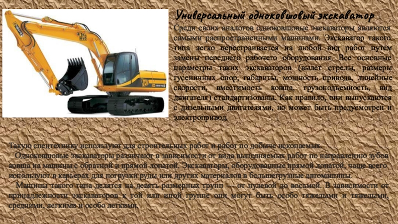 Такую спецтехнику используют для строительных работ и работ по добыче ископаемых.