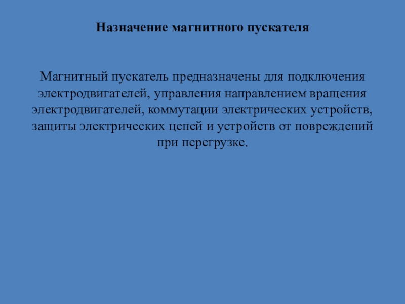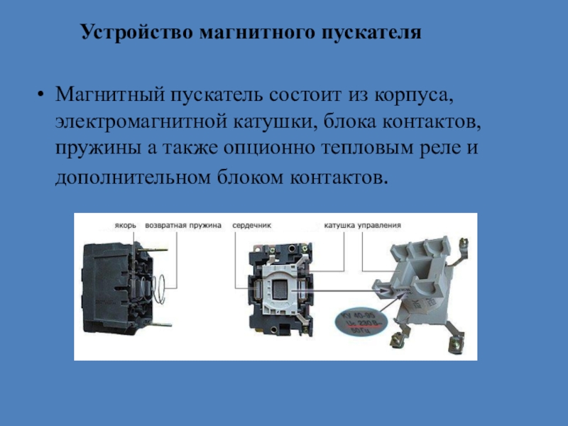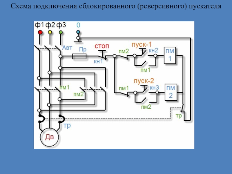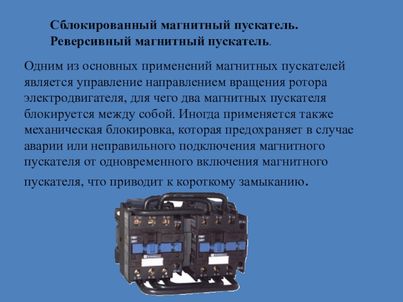 Сблокированный магнитный пускатель. Реверсивный магнитный пускатель.