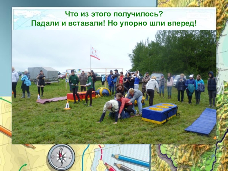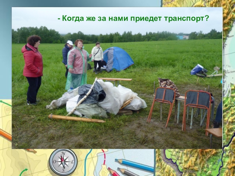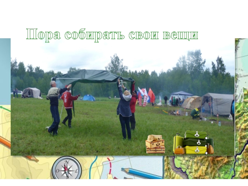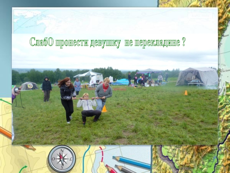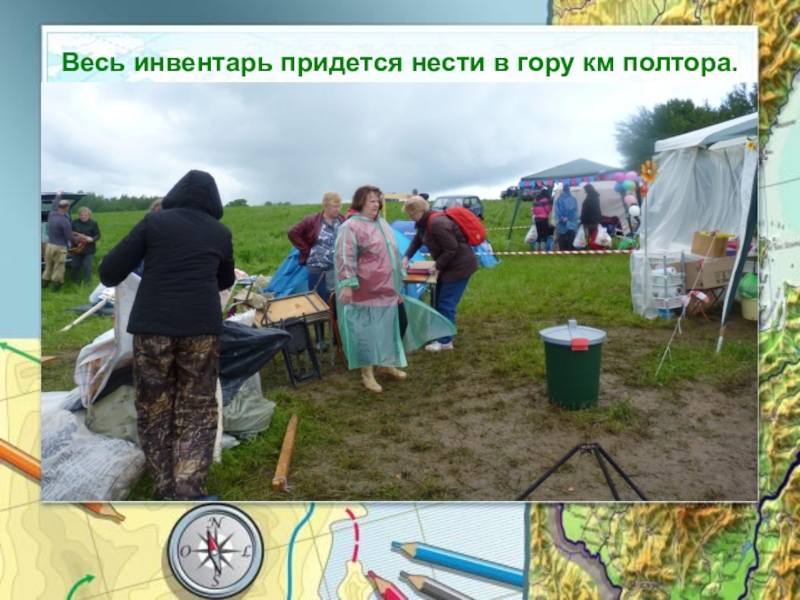 Слайд 42Весь инвентарь придется нести в гору км полтора.