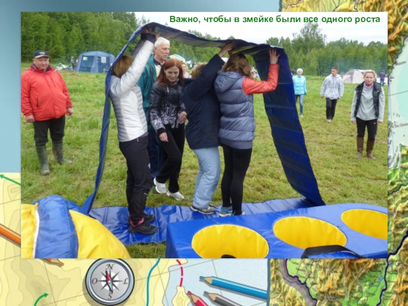 Слайд 15Важно, чтобы в змейке были все одного роста