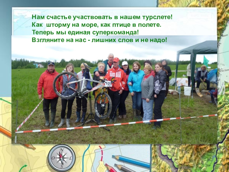 Слайд 6Нам счастье участвовать в нашем турслете!
