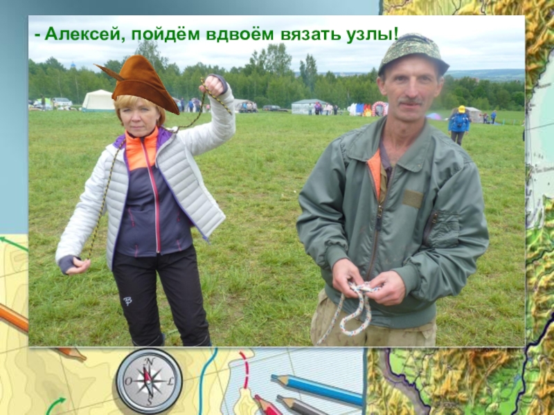 Слайд 25- Алексей, пойдём вдвоём вязать узлы!