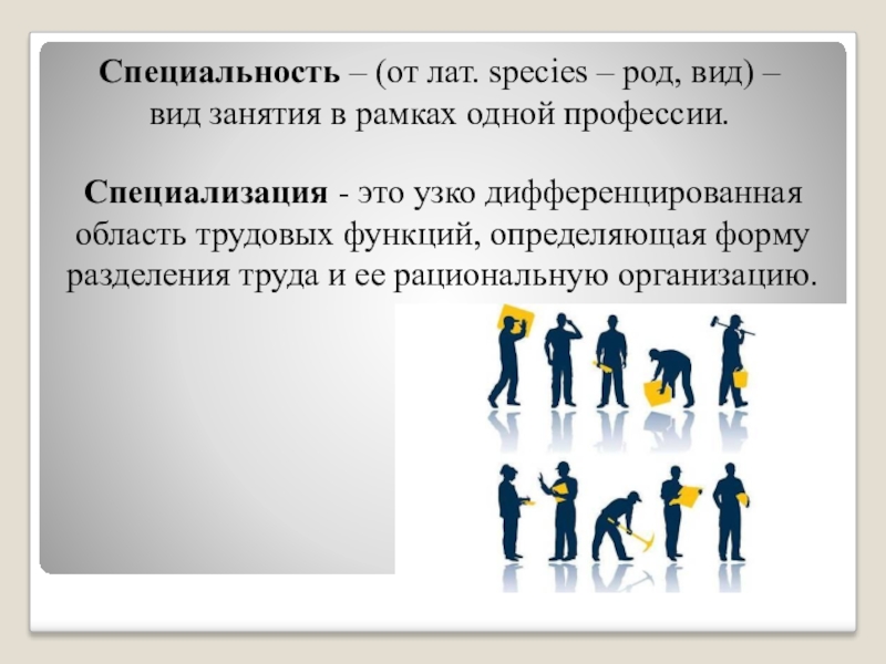 Специализация - это узко дифференцированная область трудовых функций, определяющая форму разделения труда и ее рациональную организацию.