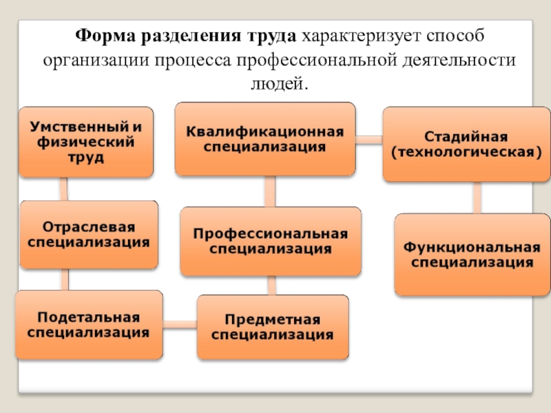 Специализация труда — форма общественного разделения труда. Она выражается в такой организации производства, когда отдельные люди выполняют только определенные трудовые операции в процессе изготовления какого-либо продукта.