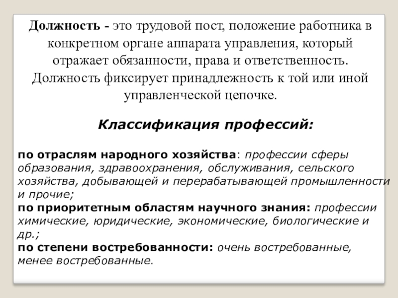Классификация профессий: