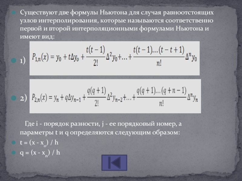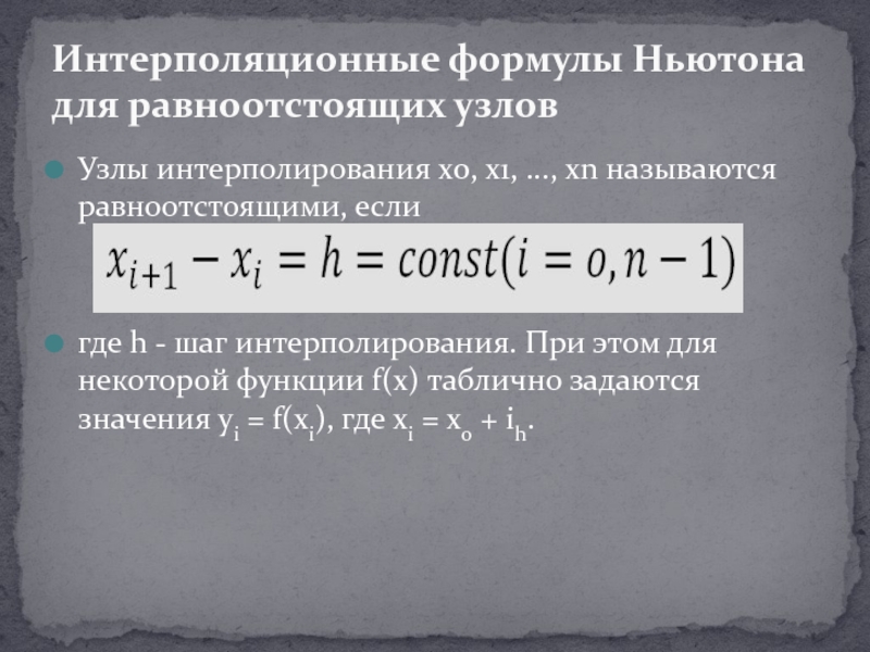 Интерполяционные формулы Ньютона для равноотстоящих узлов