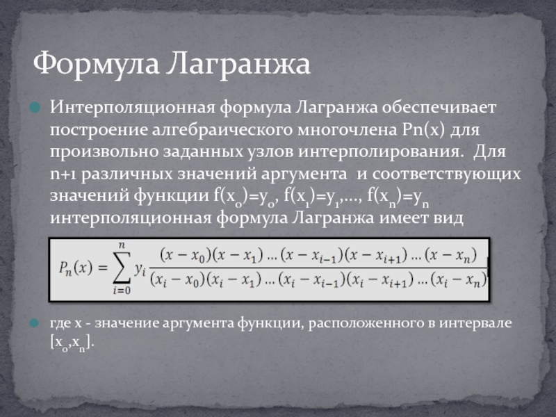Где лагранжевы коэффициенты, определяемые по формуле Лагранжа