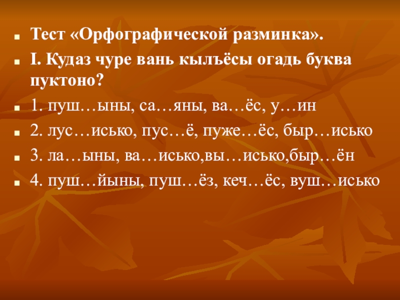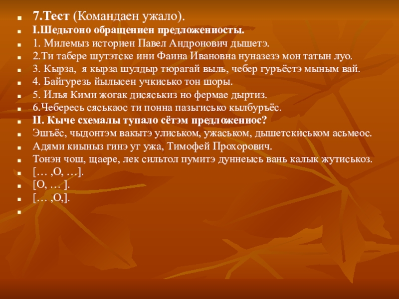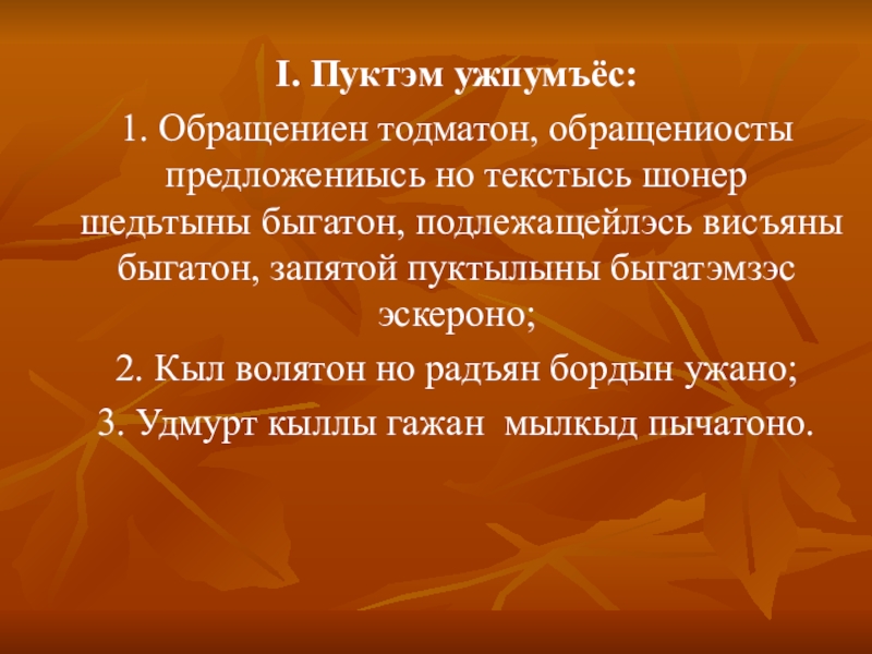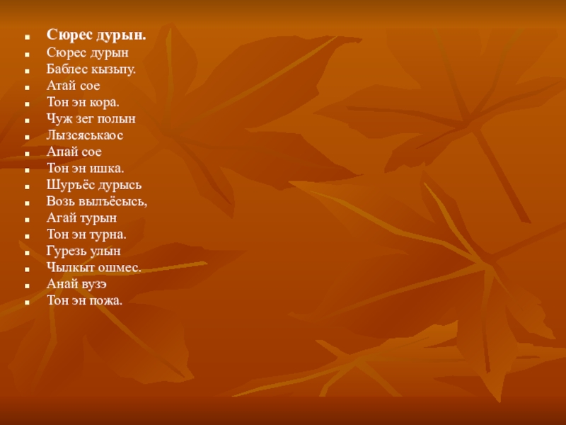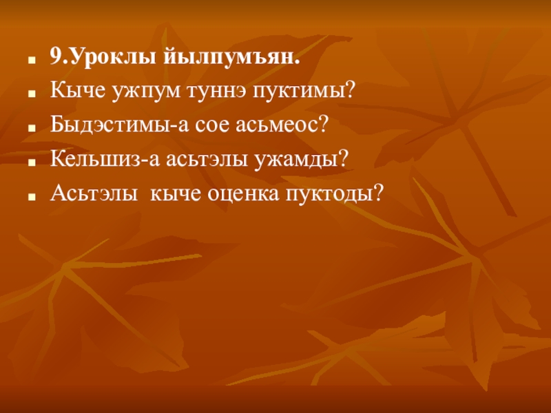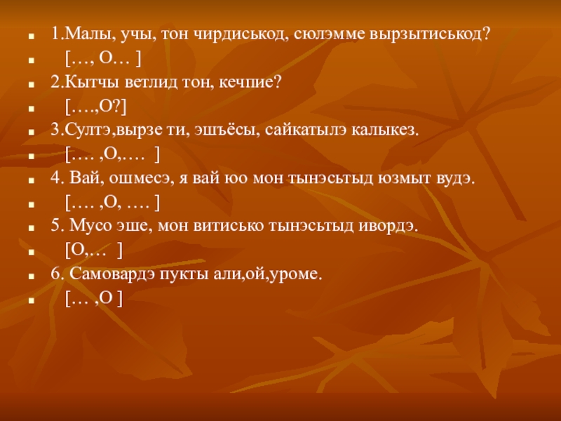 Слайд 111.Малы, учы, тон чирдиськод, сюлэмме вырзытиськод?