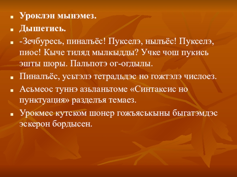 Асьмеос туннэ азьланьтоме «Синтаксис но пунктуация» разделъя темаез.