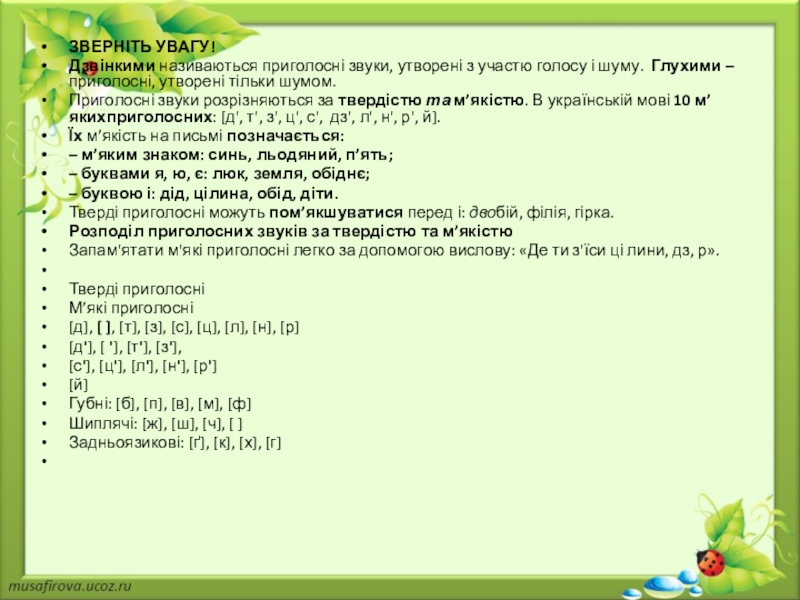 ДЗВІНКІ ТА ГЛУХІ. ПОЗНАЧЕННЯ М’ЯКОСТІ ПРИГОЛОСНИХ