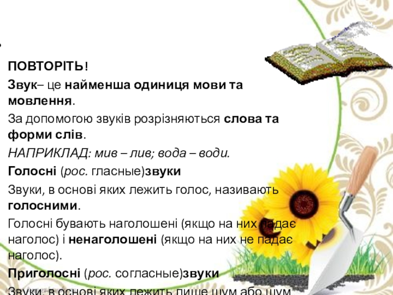 ЗВУКИ МОВИ ТА ЗВУКИ МОВЛЕННЯ. ГОЛОСНІ Й ПРИГОЛОСНІ ЗВУКИ. ПРИГОЛОСНІ ТВЕРДІ