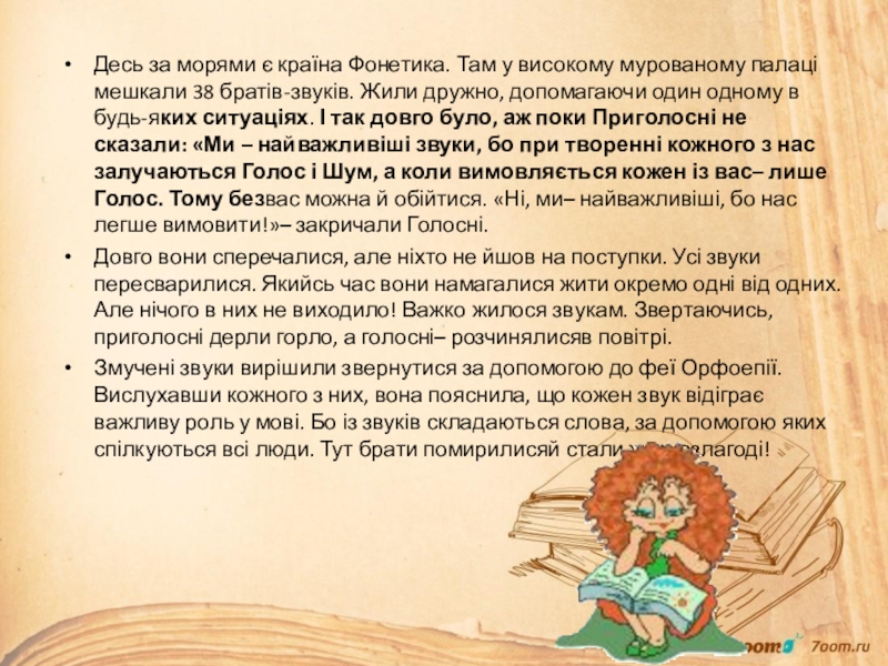 Слайд 6Десь за морями є країна Фонетика. Там у високому мурованому палаці