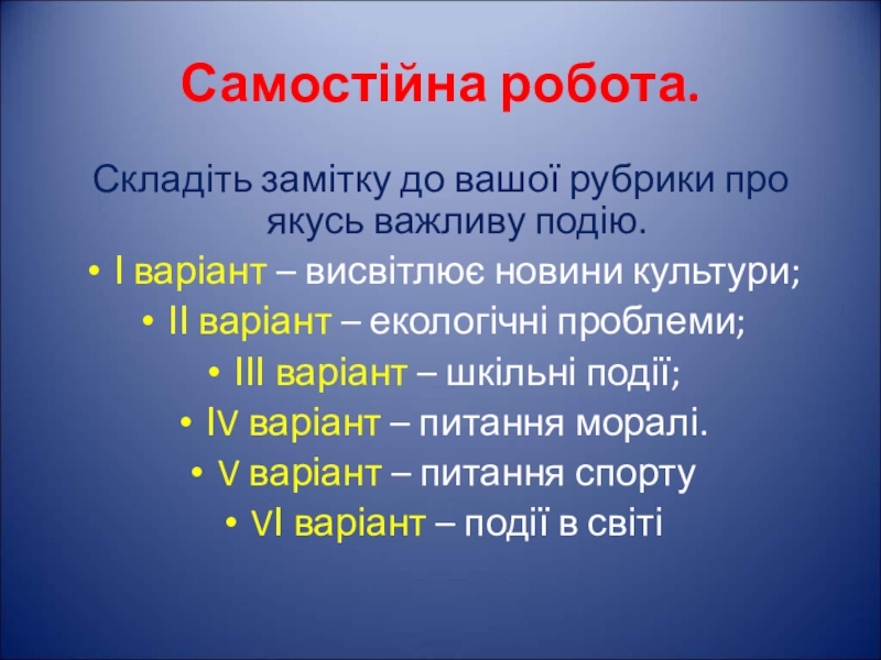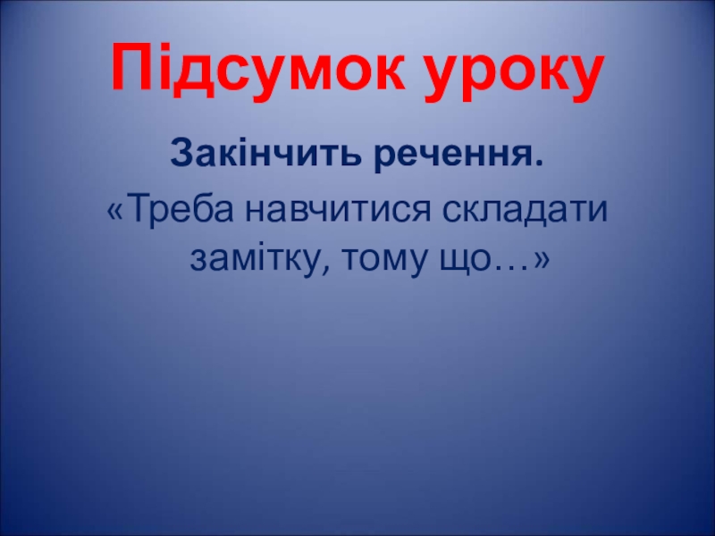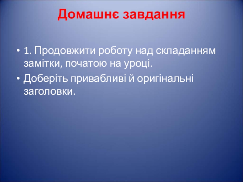1. Продовжити роботу над складанням замітки, початою на уроці.