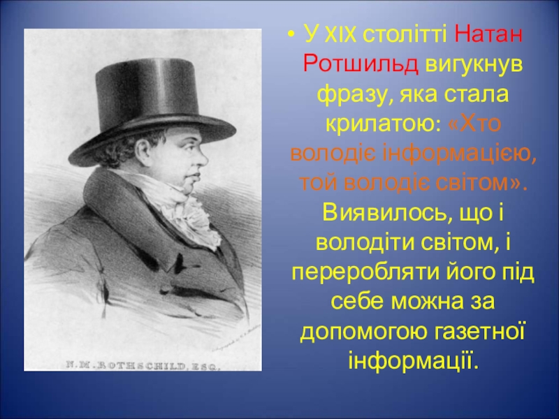 У XIX столітті Натан Ротшильд вигукнув фразу, яка стала крилатою: «Хто