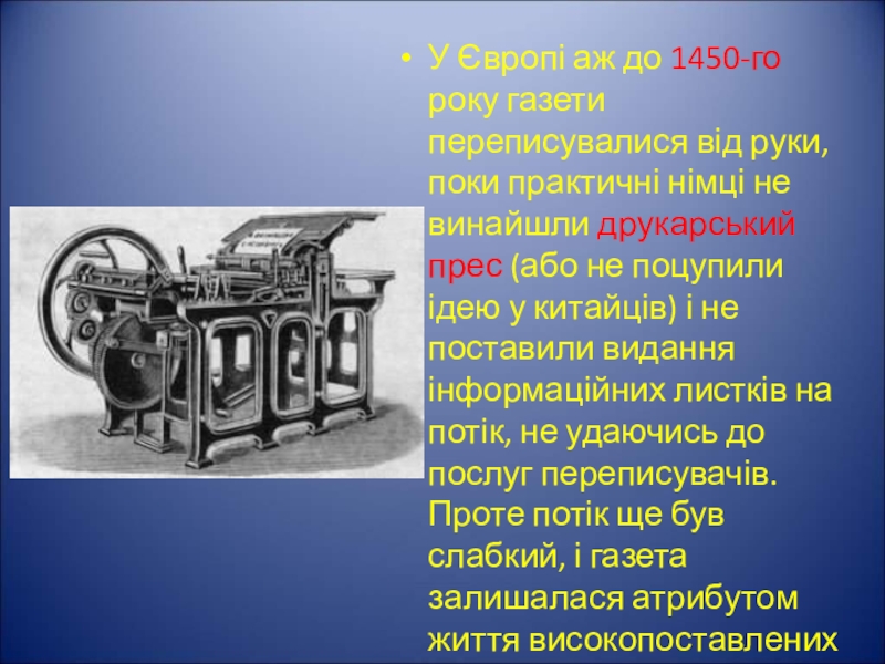 У Європі аж до 1450-го року газети переписувалися від руки, поки