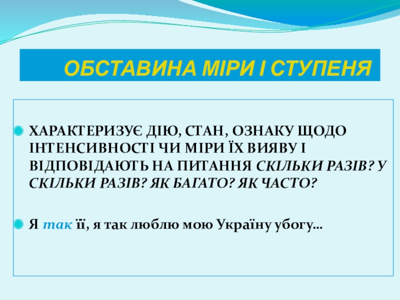 Слайд 18 ОБСТАВИНА МІРИ І СТУПЕНЯ