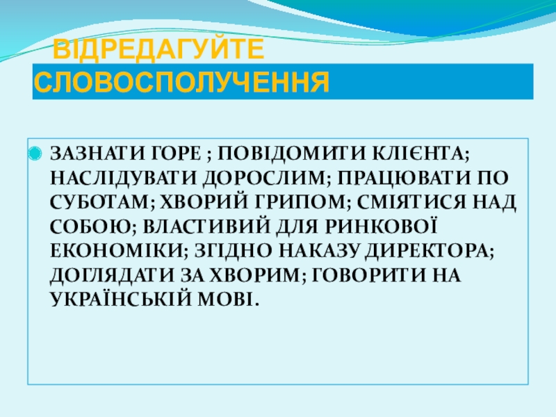 Слайд 40 ВІДРЕДАГУЙТЕ СЛОВОСПОЛУЧЕННЯ